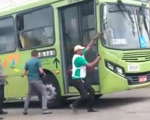 VÍDEO: Sindicalista se agarra a ônibus para impedir veículo de circular na Grande Ilha