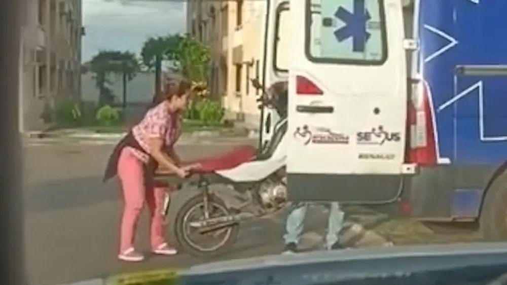 Moto é flagrada sendo atendida por ambulância na Grande Ilha