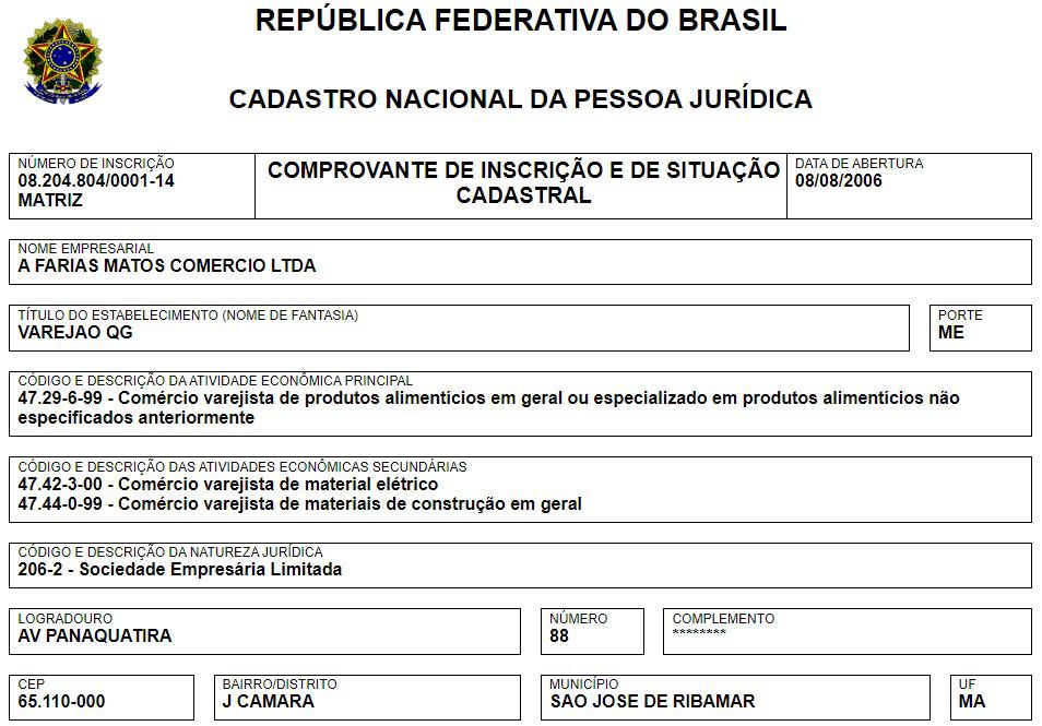Chama a atenção o CNPJ apontado como contratante da pesquisa: A.FARIAS MATOS COMERCIO LTDA. Esta é a razão social do “Varejão Quebra Galho”. O comércio funciona às margens da Avenida Panaquatira, na feira do bairro J. Câmara, em Ribamar. Questionamentos sobre qual interesse uma empresa do segmento teria em financiar uma pesquisa de intenções de votos logo foram levantados.