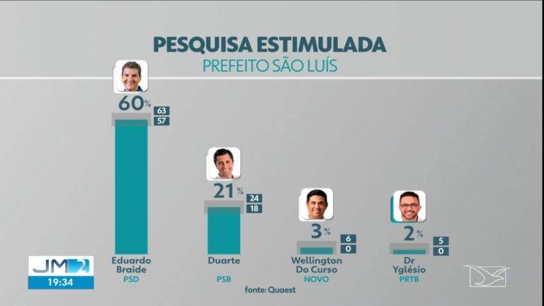 O Instituto Quaest, em pesquisa encomendada e divulgada pelo Grupo Mirante na noite desta segunda-feira (9), não tomou conhecimento dos deputados estaduais Wellington do Curso (Novo) e Yglésio Moyses (PRTB).
