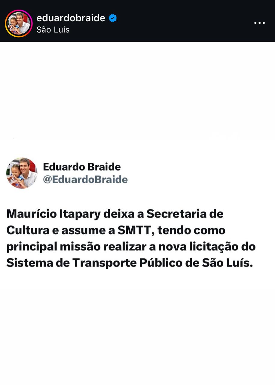 Maurício Itapary é o novo nome para a pasta, após a saída relâmpago de Rafael Kriek, que ficou apenas dez dias no cargo e se licenciou alegando estresse durante a greve dos rodoviários. Antes dele, Diego Rodrigues ocupava o posto, mas foi substituído sem explicações. As trocas sucessivas mostram que Braide não consegue manter uma equipe estável nem apresentar soluções eficazes para os problemas que afetam milhares de usuários do transporte público.